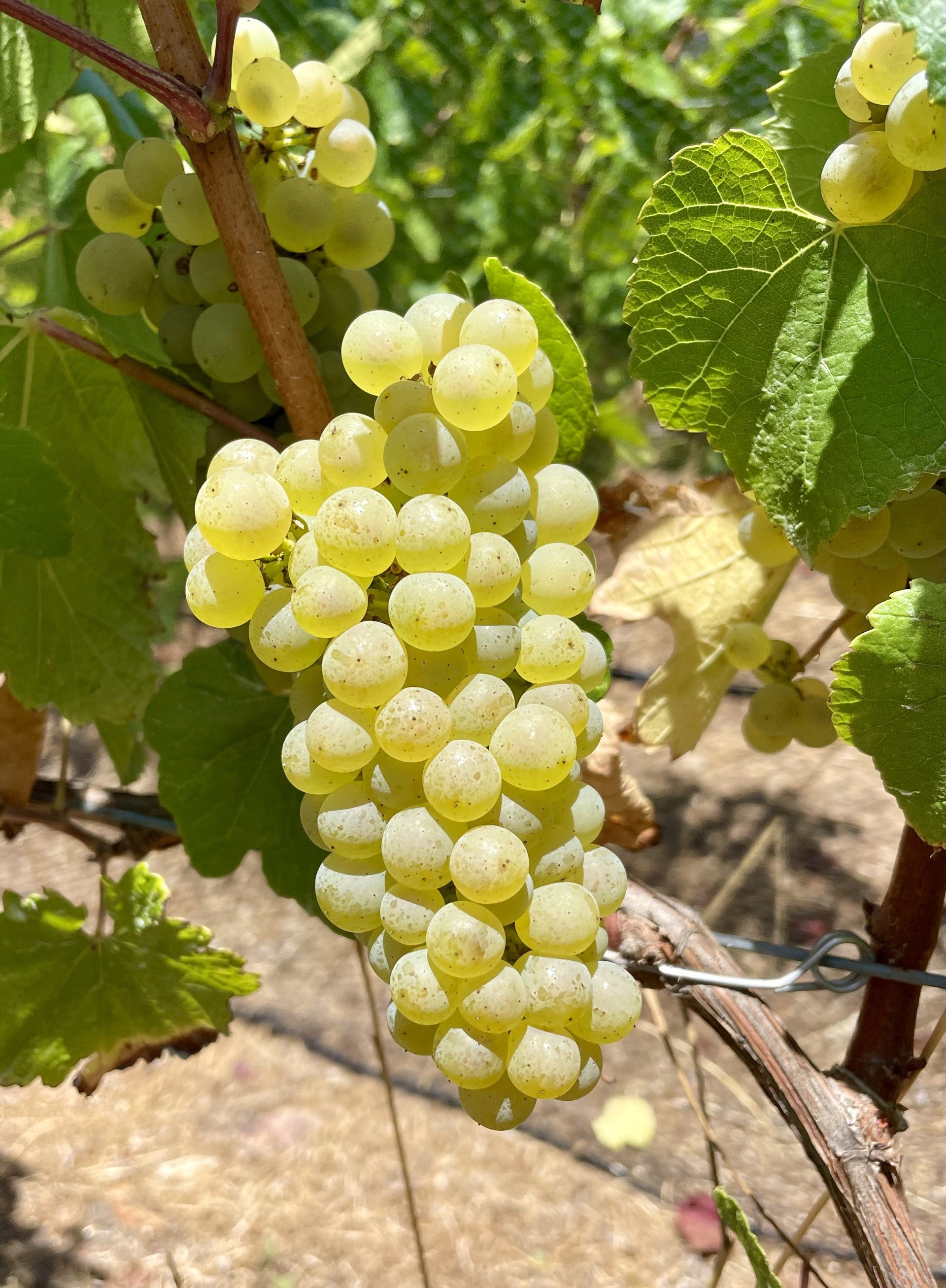 High density planting promotes competition, driving root systems deeper into the soil. Our soil is gravelly, granite, loam with clay at 1-1.5 meters, a very free draining site. High density planting promotes smaller bunches, berries, and quality. The close plantings encourage the roots to find their own water producing intense flavours of the terroir.